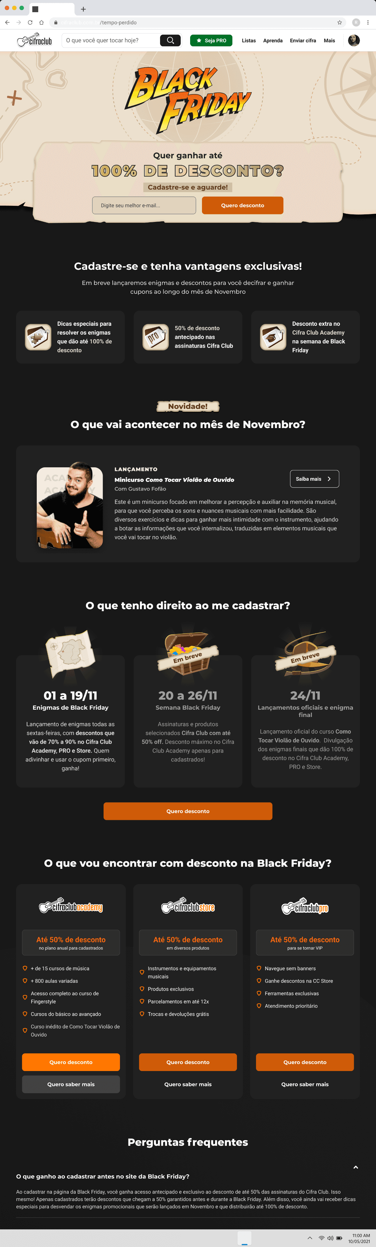 The main challenge was to effectively capture leads and keep user engagement in a campaign that would last 30 days before Black Friday. We aimed to ensure that the visual identity was attractive and intuitive, while making sure it stood out amidst the fierce competition during this period. Let's get creative and bring some vibrance to the design world!